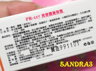 PR-117青春露精華霜瓶身是白色長軟管 擠壓後會恢復原狀不會有凹陷情形 瓶身印製正面與外盒相似 印製主要圖文和部分原文介紹